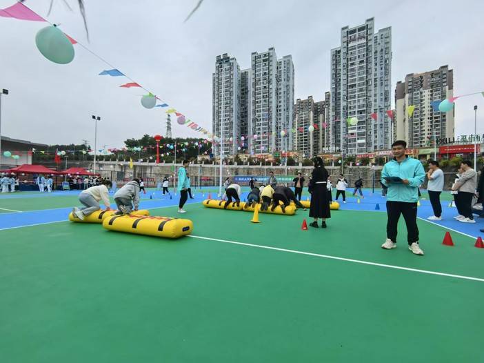 阳光洒满校园,师生们欢聚一堂,共同参与了一系列精彩绝伦的活动。现场洋溢着欢乐的气氛,观众们的加油声和欢呼声汇成了一曲动人的乐章。 “你拉我跳”比赛率先拉开序幕,参赛者们两两携手,肩并肩在赛道上奋勇争先。他们或快或慢,但每一对团队都展现了无与伦比的默契和团队精神。观众们的加油声此起彼伏,为参赛者们注入了无穷的动力。 紧接着,“同舟共济”比赛让参赛者们齐心协力,共同驾驭一艘“大船”穿越重重障碍。这项活动不仅考验了大家的协调能力,更加强了师生之间的合作与信任。