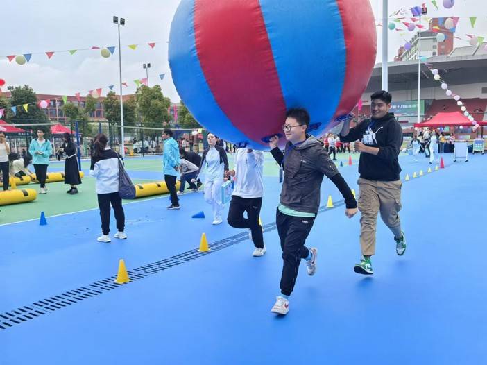 “运转乾坤”比赛则是一场智慧与体力的较量。参赛者们需要在限定时间内,通过团队合作,挪动巨大的圆球,完成一系列复杂的任务。这项活动不仅考验了大家的智力,更考验了团队的协作能力。 活动的亮点之一还有丰富的纪念品。每一位参与活动的师生都有机会赢取精美的纪念品,这些纪念品不仅代表了对他们参与活动的认可,更是对他们团队精神和运动精神的赞赏。 随着活动的圆满结束,师生们纷纷表示,这样的活动不仅让大家在紧张的学习之余得到了放松,更增进了师生之间的情感交流,增强了团队的凝聚力。让我们共同期待下一次体育节的到来,再次享受运动带来的快乐和激情!