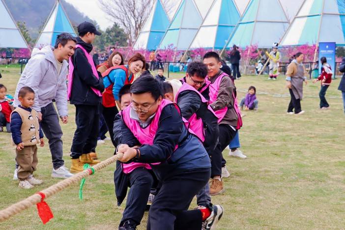 本次团建活动设置“捕鱼”热身游戏,踩气球、抢凳子个人趣味项目,以及旱地龙舟、同舟共济、拔河团队协作项目,职工们踊跃参与、默契配合,现场氛围热烈。